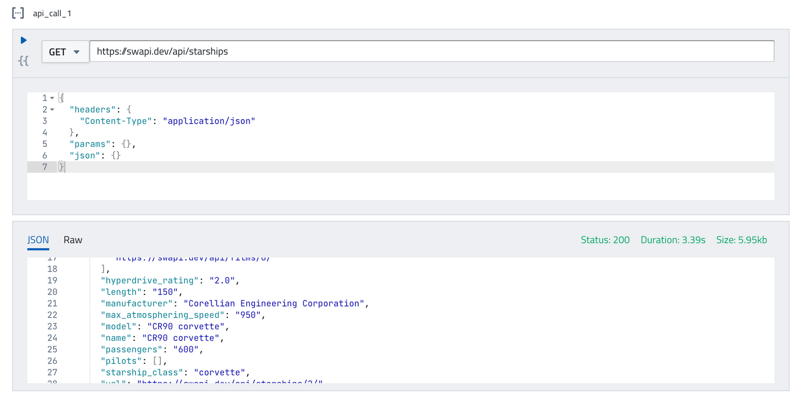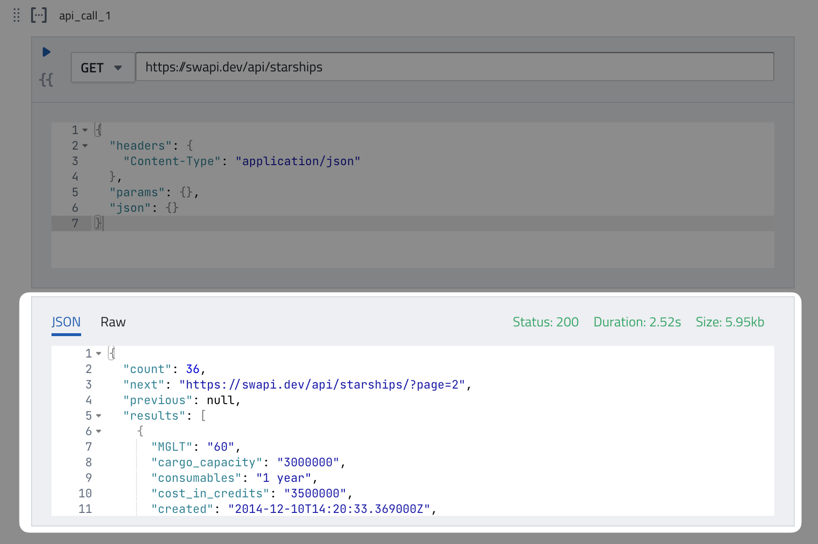 {{ api_call_1.data.results[0] }}Â to retrieve the first element of the results array in the example above.